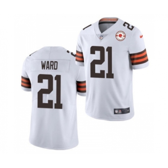 Men's Cleveland Browns #21 Denzel Ward 2021 White 75th Anniversary Patch Vapor Untouchable Limited Jersey