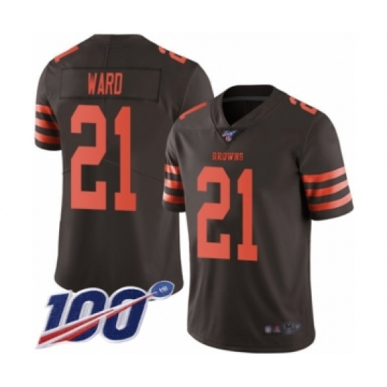 >Men's Cleveland Browns #21 Denzel Ward Limited Brown Rush Vapor Untouchable 100th Season Football Jersey