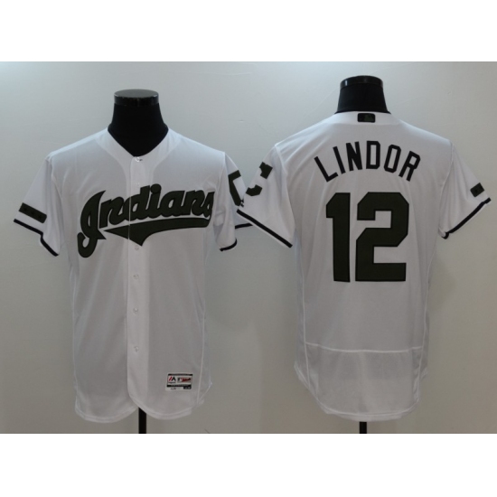 Men's Cleveland Indians #12 Francisco Lindor White Home Stitched Baseball Jersey