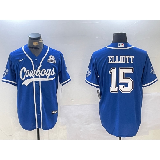 >Men's Dallas Cowboys #15 Ezekiel Elliott Light Blue With 1960 Cool Base Stitched Baseball Jersey