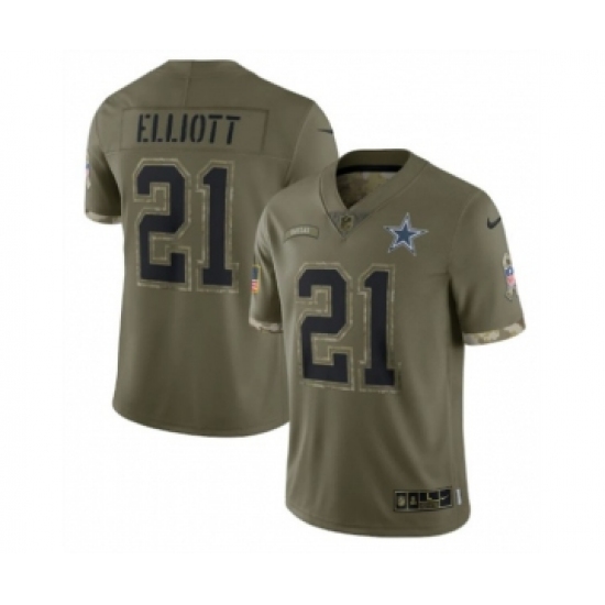>Men's Dallas Cowboys #21 Ezekiel Elliott 2022 Olive Salute To Service Limited Stitched Jersey
