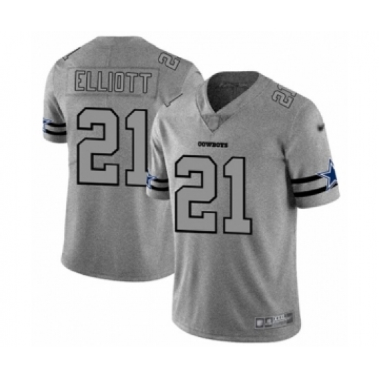 >Men's Dallas Cowboys #21 Ezekiel Elliott Gray Team Logo Gridiron Limited Football Jersey