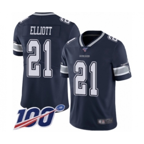 >Men's Dallas Cowboys #21 Ezekiel Elliott Navy Blue Team Color Vapor Untouchable Limited Player 100th Season Football Jersey