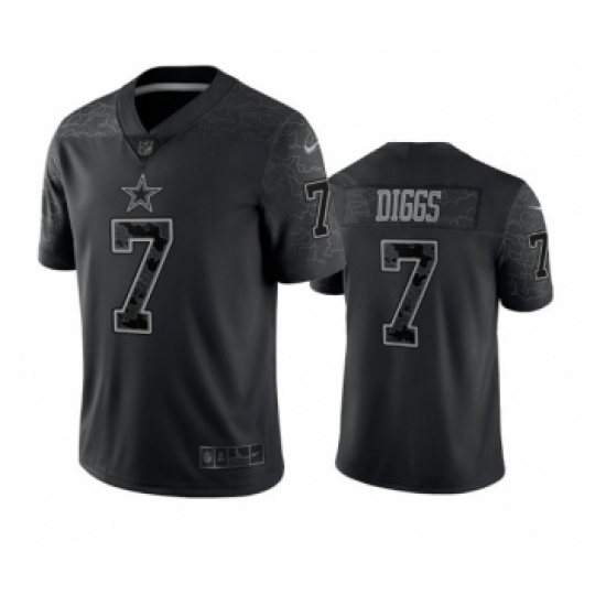 >Men's Dallas Cowboys #7 Trevon Diggs Black Reflective Limited Stitched Football Jersey
