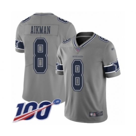 Men's Dallas Cowboys #8 Troy Aikman Limited Gray Inverted Legend 100th Season Football Jersey