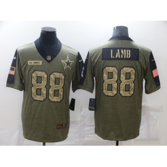 >Men's Dallas Cowboys #88 CeeDee Lamb Camo 2021 Salute To Service Limited Player Jersey