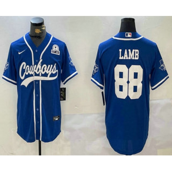 Men's Dallas Cowboys #88 CeeDee Lamb Royal With Cool Base Stitched Baseball Jersey