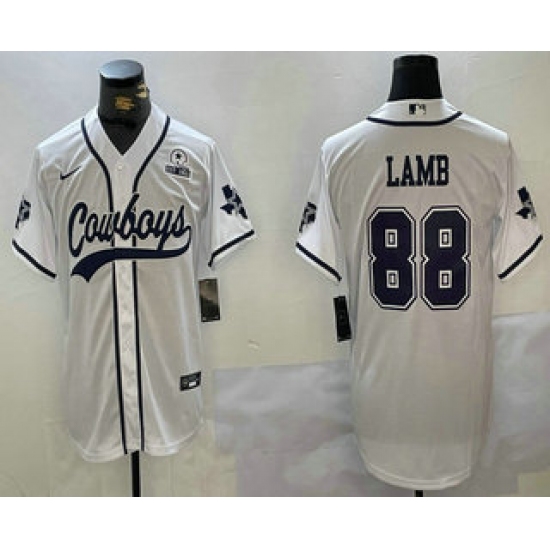 Men's Dallas Cowboys #88 CeeDee Lamb White With 1960 Cool Base Stitched Baseball Jersey