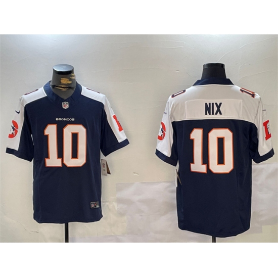 >Men's Denver Broncos #10 Bo Nix Navy 2024 F.U.S.E. V2 Throwback Vapor Limited Alternate Stitched Football Jersey