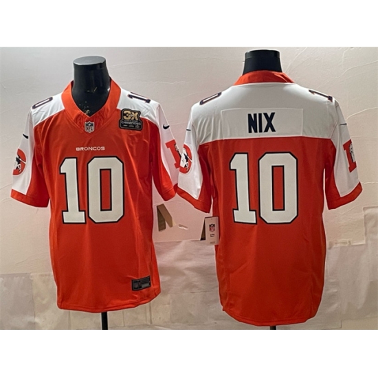 Men's Denver Broncos #10 Bo Nix Orange 2024 F.U.S.E. With 3-Time Champions Throwback Vapor Limited Alternate Football Stitched Jersey