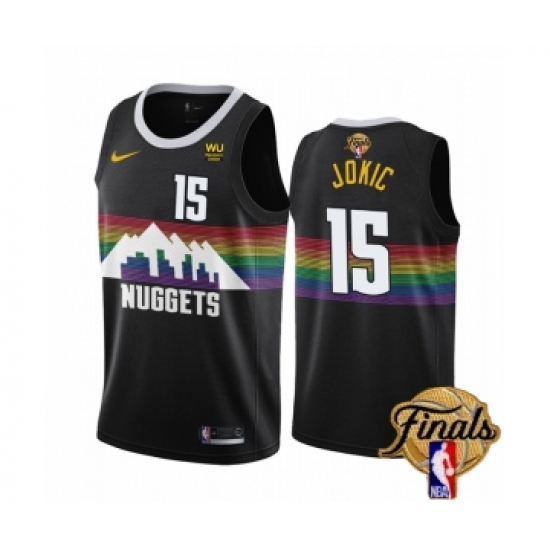 Men's Denver Nuggets #15 Nikola Jokic Black 2023 Finals City Edition Stitched Basketball Jersey