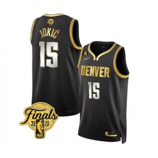Men's Denver Nuggets #15 Nikola Jokic Black 2023 Finals Collection With NO.6 Stitched Basketball Jersey