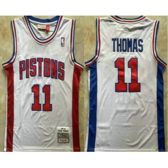 Men's Detroit Pistons #11 Isiah Thomas White 1988-89 Hardwood Classics Soul Swingman Throwback Jersey