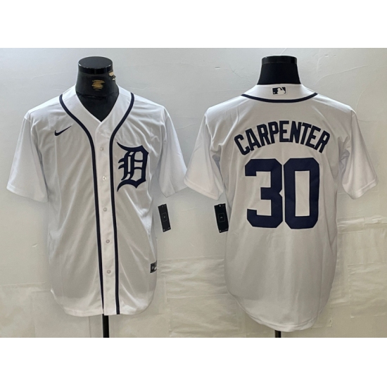 >Men's Detroit Tigers #30 Kerry Carpenter White Cool Base Stitched Jersey