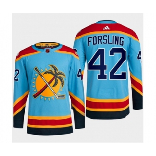 >Men's Florida Panthers #42 Gustav Forsling Blue 2022-23 Reverse Retro Stitched Jersey