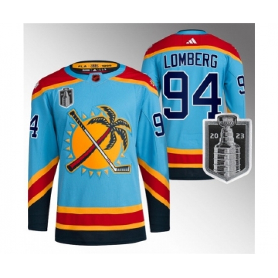 Men's Florida Panthers #94 Ryan Lomberg Blue 2023 Stanley Cup Final Reverse Retro Stitched Jersey
