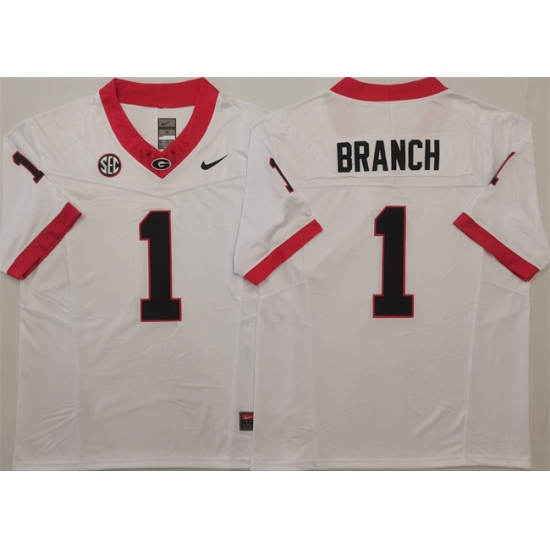 >Men's Georgia Bulldogs #1 Zachariah Branch White 2025 F.U.S.E. Stitched Jersey