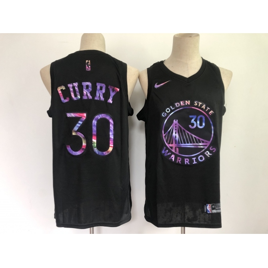 Men's Golden State Warriors #30 Stephen Curry Black Iridescent Holographic 2021 Jersey