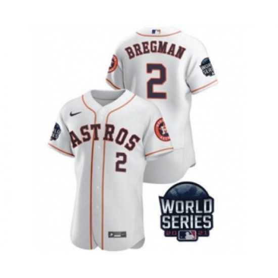 Men's Houston Astros #2 Alex Bregman 2021 White World Series Flex Base Stitched Baseball Jersey