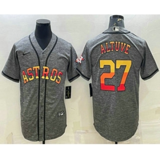 Men's Houston Astros #27 Jose Altuve Grey Gridiron With Patch Cool Base Stitched Baseball Jersey