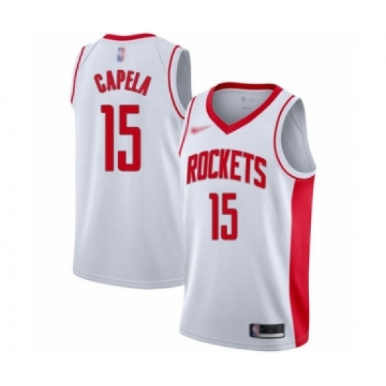 >Men's Houston Rockets #15 Clint Capela Authentic White Finished Basketball Jersey - Association Edition