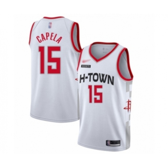 >Men's Houston Rockets #15 Clint Capela Swingman White Basketball Jersey - 2019 20 City Edition