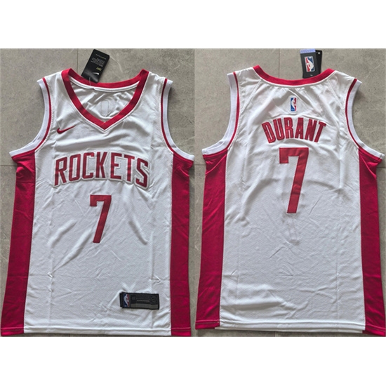>Men's Houston Rockets #7 Kevin Durant White 2025 Association Edition Stitched Jersey