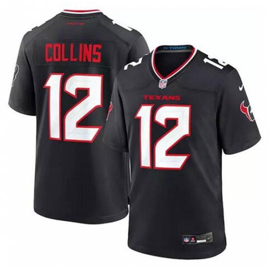 >Men's Houston Texans #12 Nico Collins Navy Stitched Game Jersey