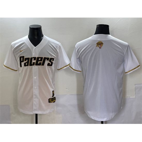 Men's Indiana Pacers Blank White Gold 2025 Finals Vapor Stitched Baseball Jersey
