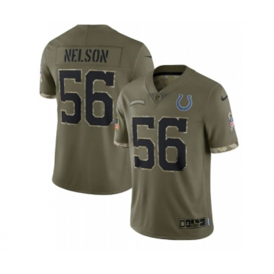 >Men's Indianapolis Colts #56 Quenton Nelson 2022 Olive Salute To Service Limited Stitched Jersey