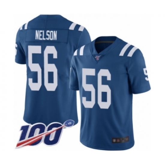 >Men's Indianapolis Colts #56 Quenton Nelson Royal Blue Team Color Vapor Untouchable Limited Player 100th Season Football Jersey