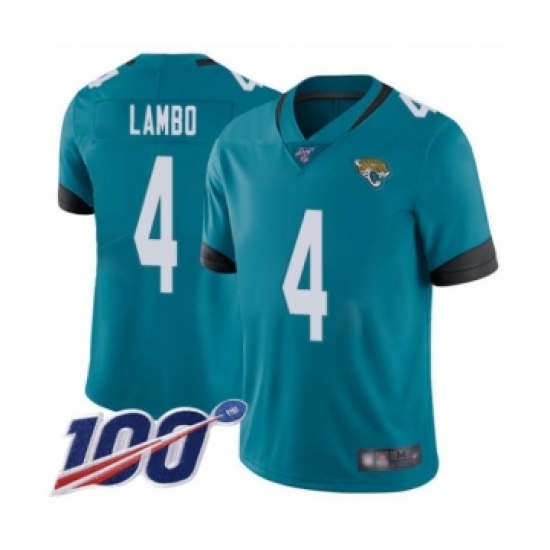 >Men's Jacksonville Jaguars #4 Josh Lambo Teal Green Alternate Vapor Untouchable Limited Player 100th Season Football Jersey