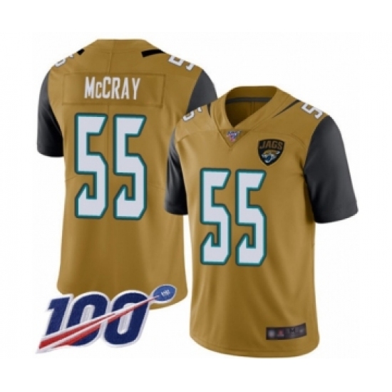 >Men's Jacksonville Jaguars #55 Lerentee McCray Limited Gold Rush Vapor Untouchable 100th Season Football Jersey