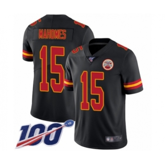 Men's Kansas City Chiefs #15 Patrick Mahomes II Limited Black Rush Vapor Untouchable 100th Season Football Jersey