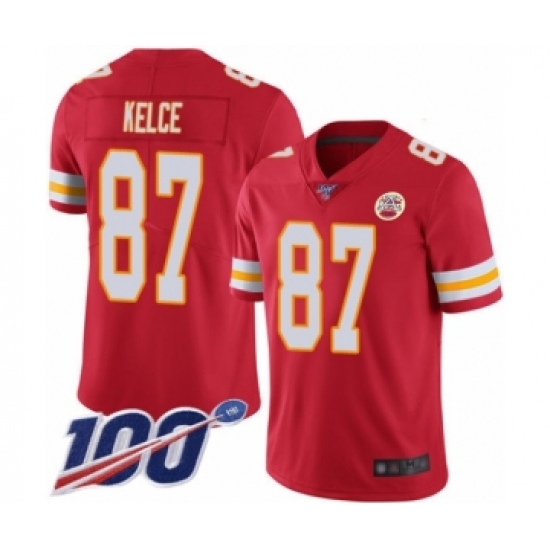 Men's Kansas City Chiefs #87 Travis Kelce Red Team Color Vapor Untouchable Limited Player 100th Season Football Jersey
