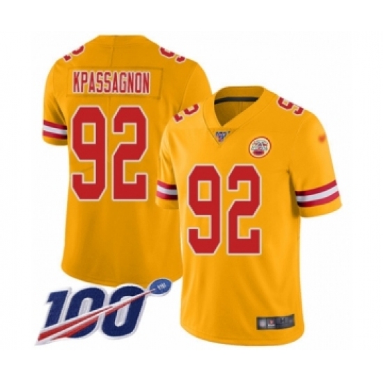 >Men's Kansas City Chiefs #92 Tanoh Kpassagnon Limited Gold Inverted Legend 100th Season Football Jersey