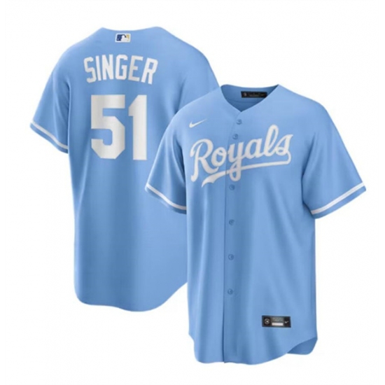 >Men's Kansas City Royals #51 Brady Singer Light Blue Stitched Baseball Jersey