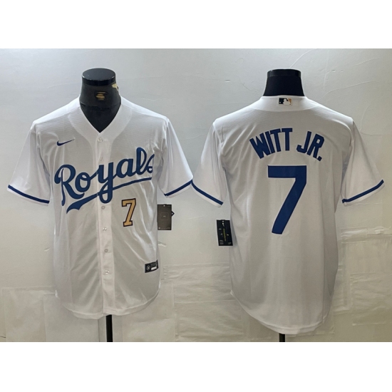 Men's Kansas City Royals #7 Bobby Witt Jr Number White Cool Base Stitched MLB Jersey1