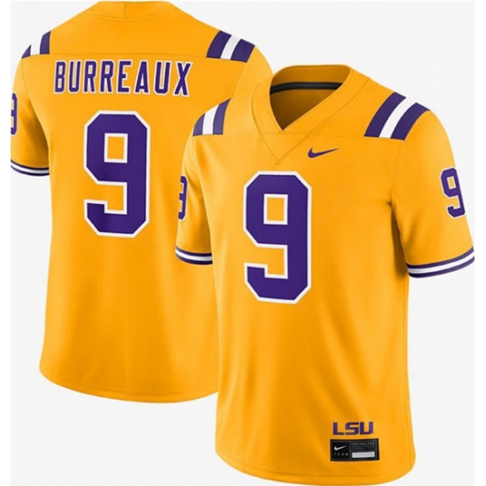 >Men's LSU Tigers #9 Joe Burrow Gold Limited Stitched Game Jersey