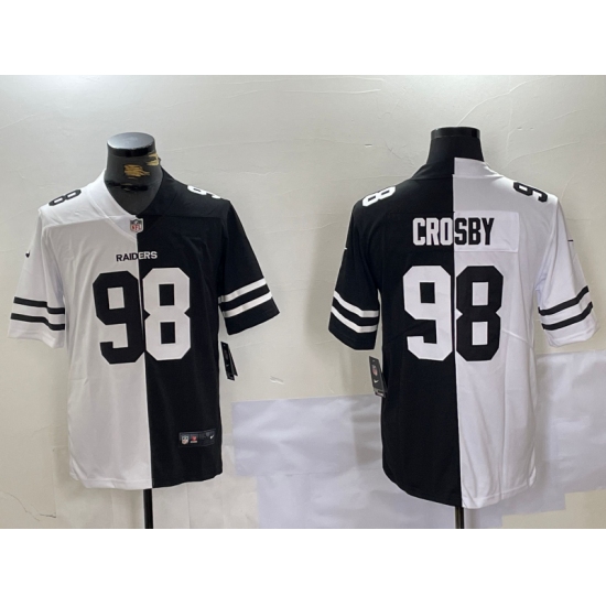 Men's Oakland Raiders #98 Maxx Crosby Black White Limited Split Fashion Football Jersey