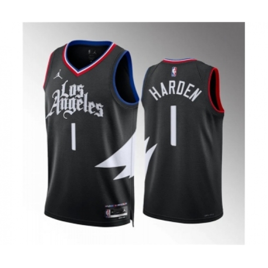 Men's Los Angeles Clippers #1 James Harden Black Statement Edition Stitched Jersey
