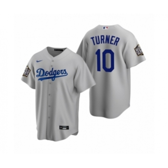 Men's Los Angeles Dodgers #10 Justin Turner Gray 2020 World Series Replica Jersey