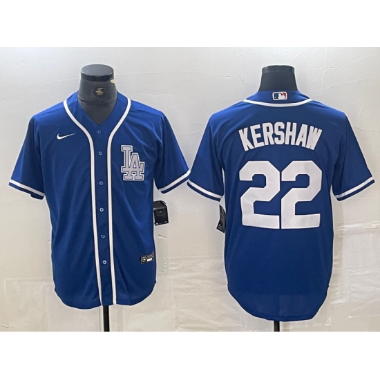 Men's Los Angeles Dodgers #22 Clayton Kershaw Blue Cool Base Stitched Baseball Jersey