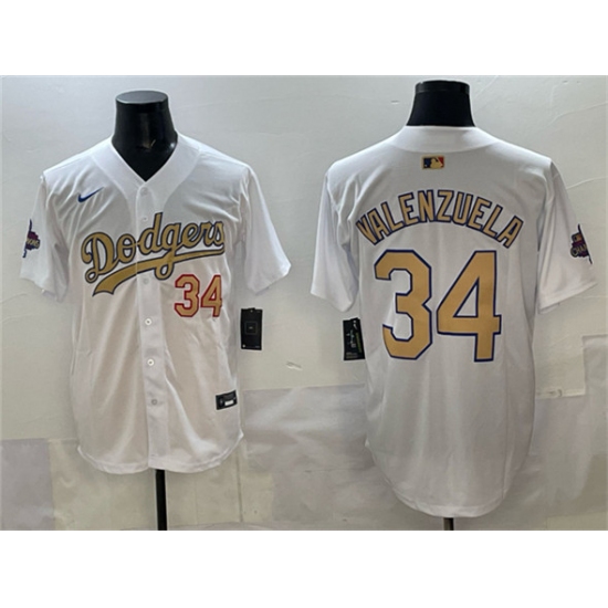 Men's Los Angeles Dodgers #34 Toro Valenzuela White Gold 2024 World Series With Fernando Memorial Limited Stitched Baseball Jersey