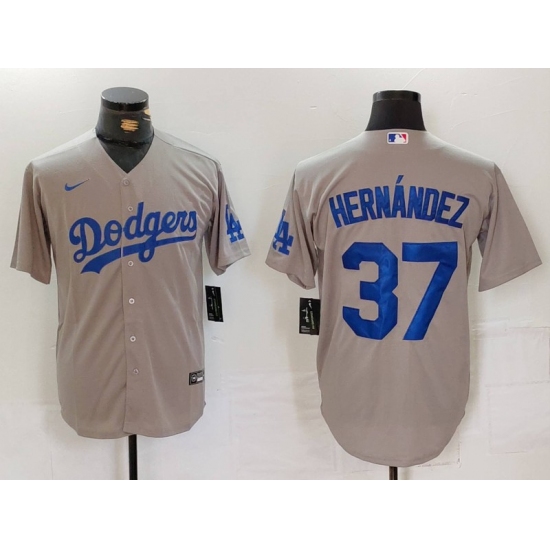 >Men's Los Angeles Dodgers #37 Teoscar Hernandez Grey Cool Base Stitched Jersey