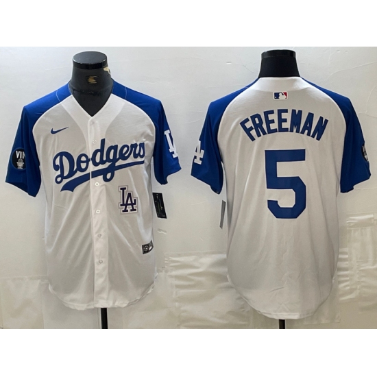 Men's Los Angeles Dodgers #5 Freddie Freeman White Blue Fashion Stitched Cool Base Limited Jersey