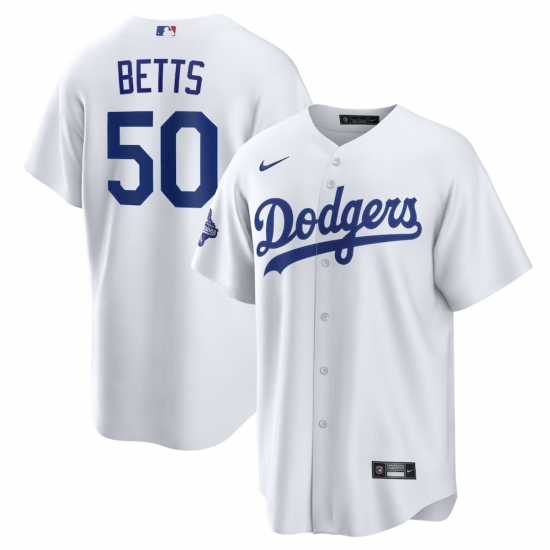 Men's Los Angeles Dodgers #50 Mookie Betts Nike White 2024 World Series Home Replica Player Jersey