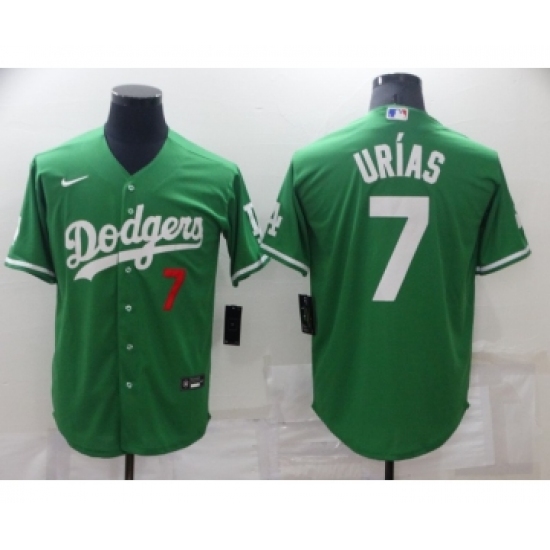>Men's Los Angeles Dodgers #7 Julio Urias Green 2021 Mexican Heritage Stitched Baseball Jersey