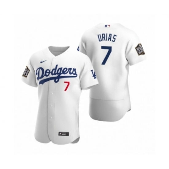 >Men's Los Angeles Dodgers #7 Julio Urias Nike White 2020 World Series Authentic Jersey