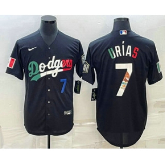 Men's Los Angeles Dodgers #7 Julio Urias Black Rainbow Mexico Cool Base Stitched Jersey